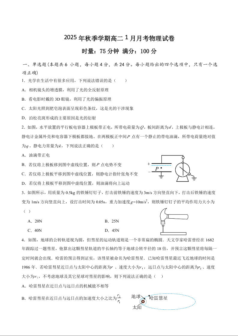 高二物理+答案--湖南省娄底市第一中学2025-2026学年高二上学期1月月考