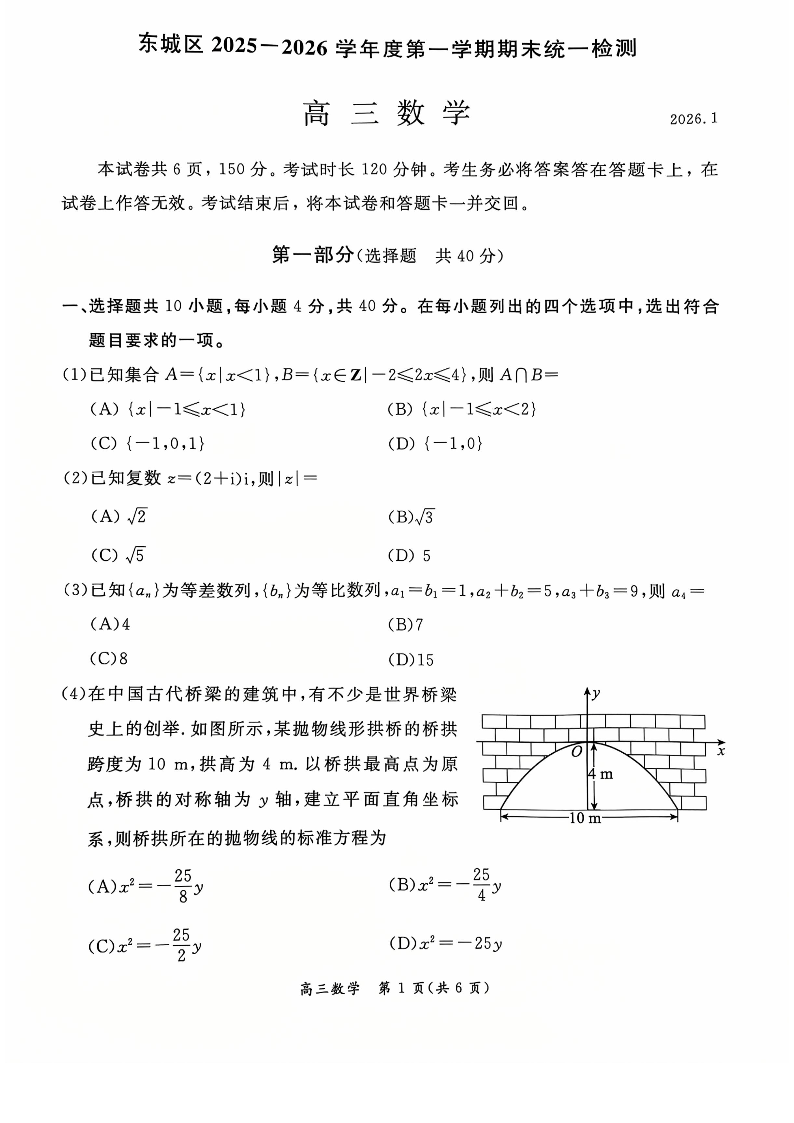 高三数学+答案--北京市东城区2026届高三上学期1月期末考试