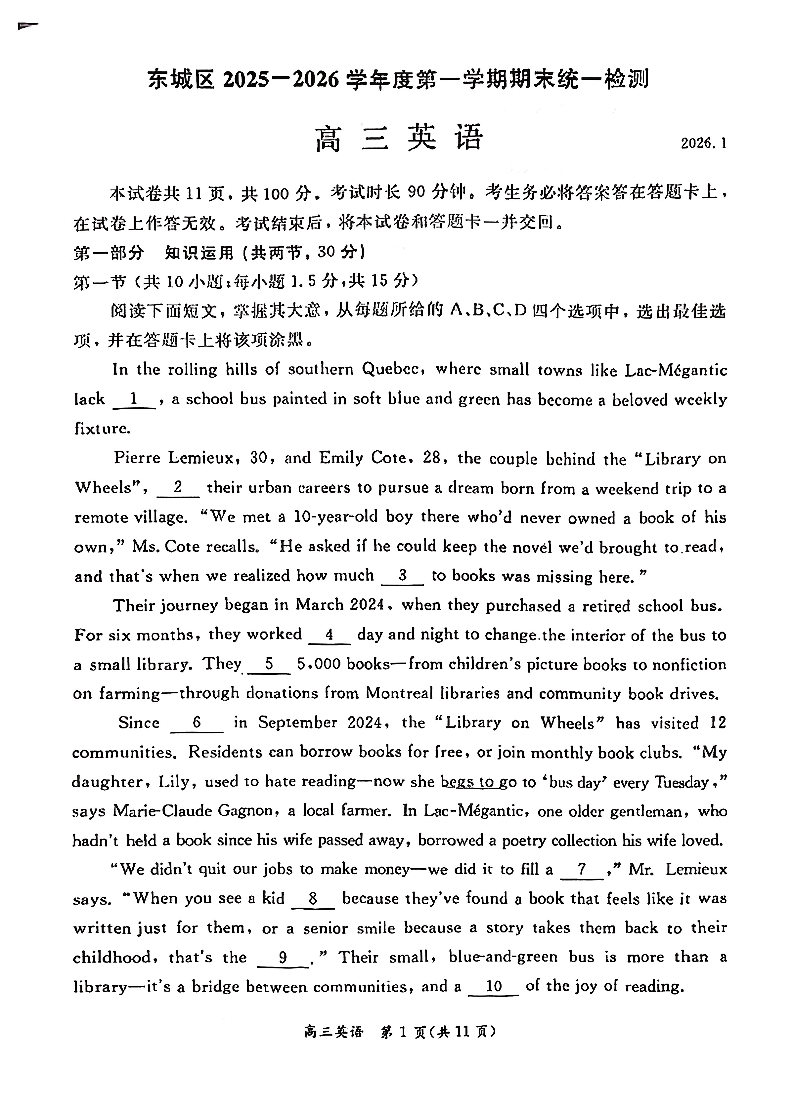 高三英语+答案--北京市东城区2026届高三上学期1月期末考试