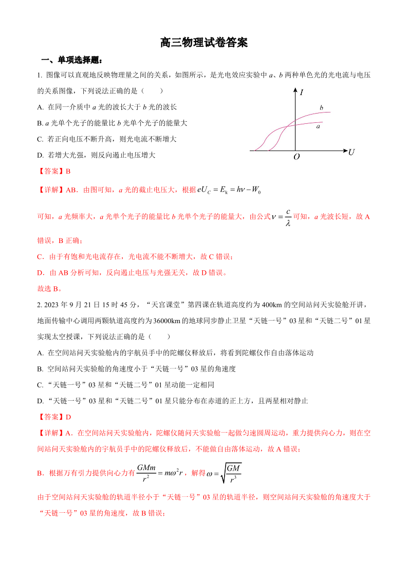 高三物理答案--安徽省合肥一中2026届高三上学期1月期末考试