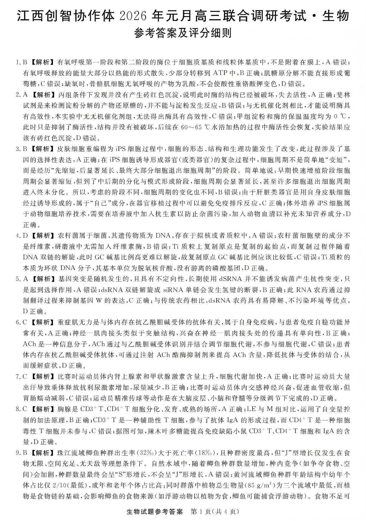 高三生物答案--江西创智协作体2026高三元月联合调研考试