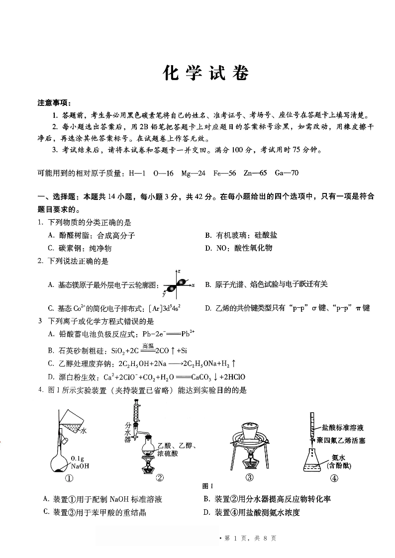 高三化学--重庆市第八中学2026届高考适应性月考卷(五)
