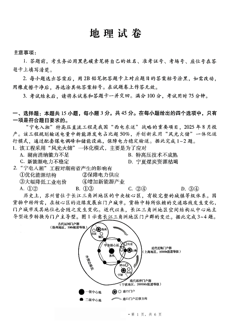 高三地理--重庆市第八中学2026届高考适应性月考卷(五)