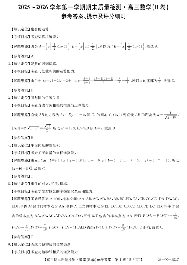 高三数学B答案--安徽省县域合作共享联盟2026届高三上学期1月期末质量检测