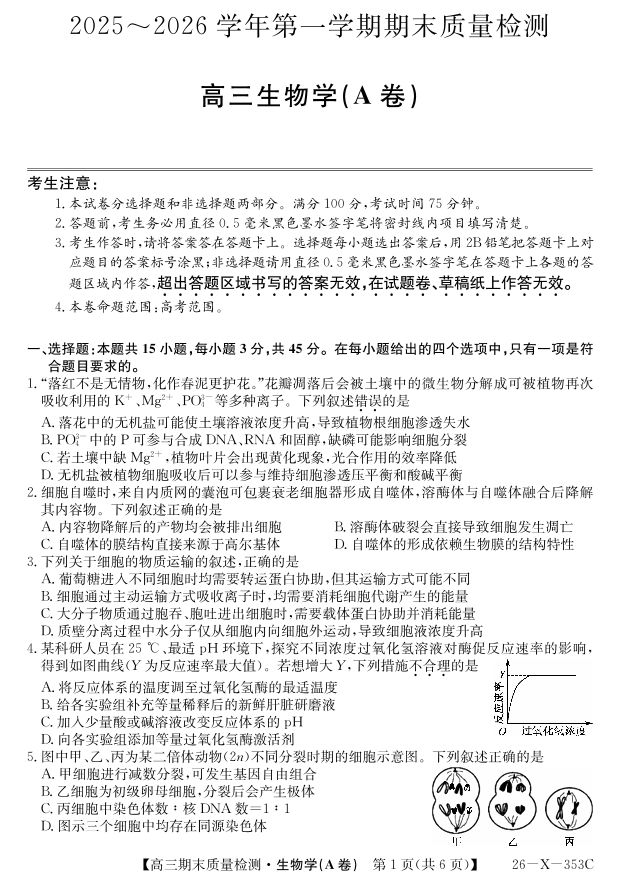 高三生物A--安徽省县域合作共享联盟2026届高三上学期1月期末质量检测