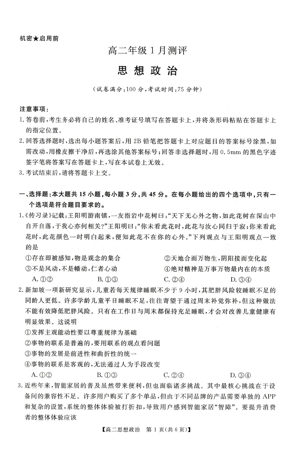 高二政治--河南省周口市重点高中2025-2026学年高二上学期1月月考