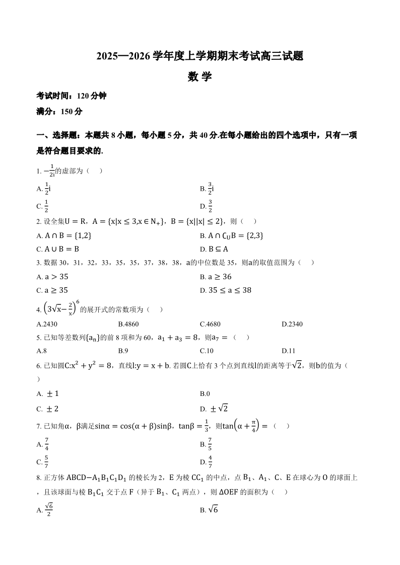 高三数学--辽宁省辽南协作校2026届高三上学期1月期末考试