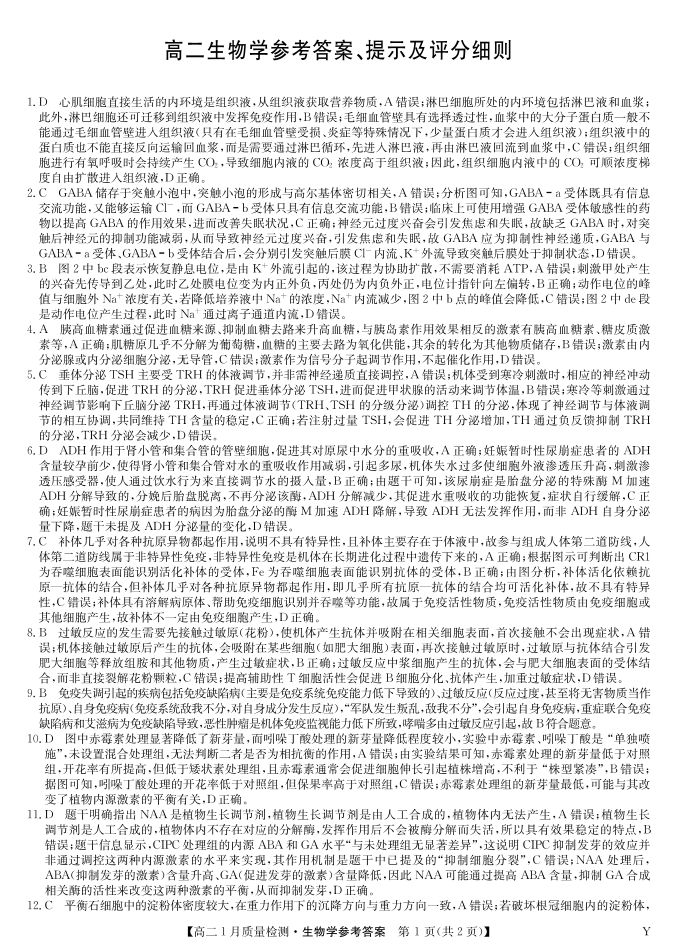 高二生物答案--甘肃省白银市靖远县第一中学2025-2026学年高二上学期1月期末