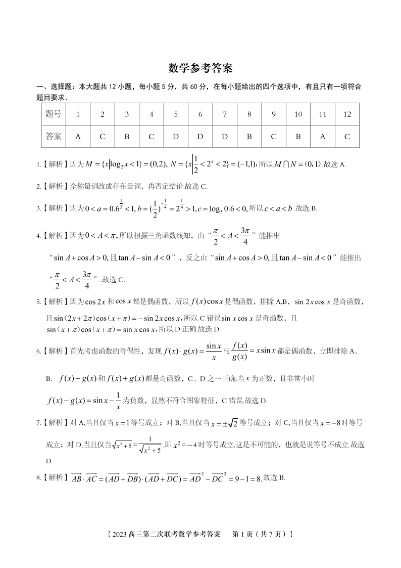 高三数学答案--安徽省省示范高中2023届高三第二次联考