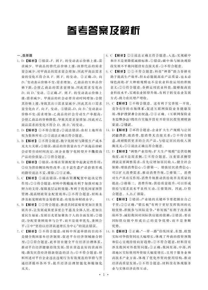 高三政治答案--甘肃省张掖市高三上学期第三次检测