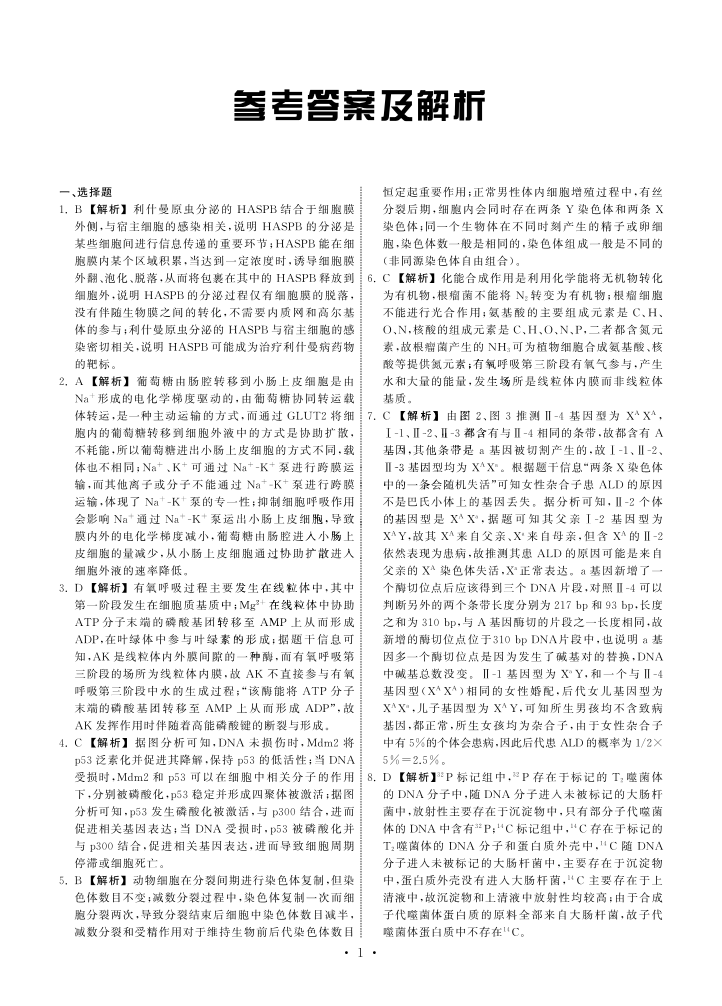 高三生物答案--甘肃省张掖市高三上学期期中检测
