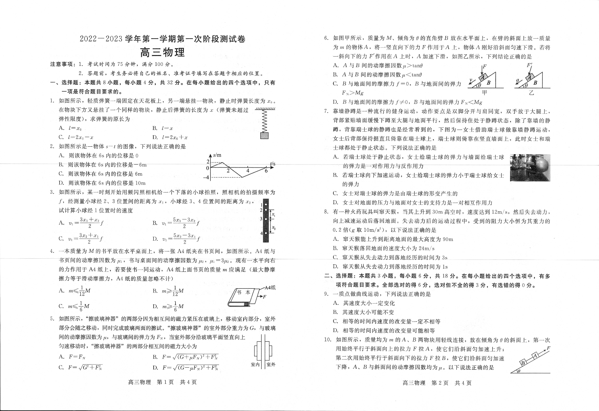 高三物理--河南省部分名校2022-2023学年高三上学期第一次阶段测试