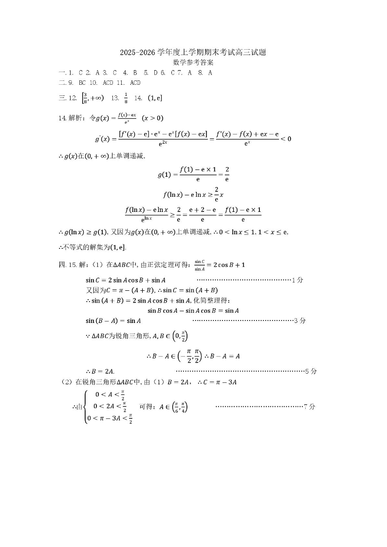 高三数学答案--辽宁省辽南协作校2026届高三1月期末考试