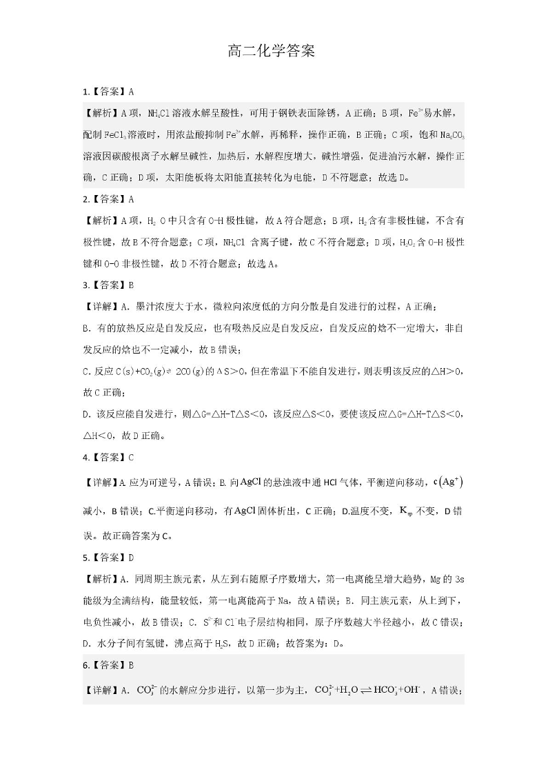 高二化学答案--吉林省普通高中友好学校联合体2025-2026学年高二上学期期末联考