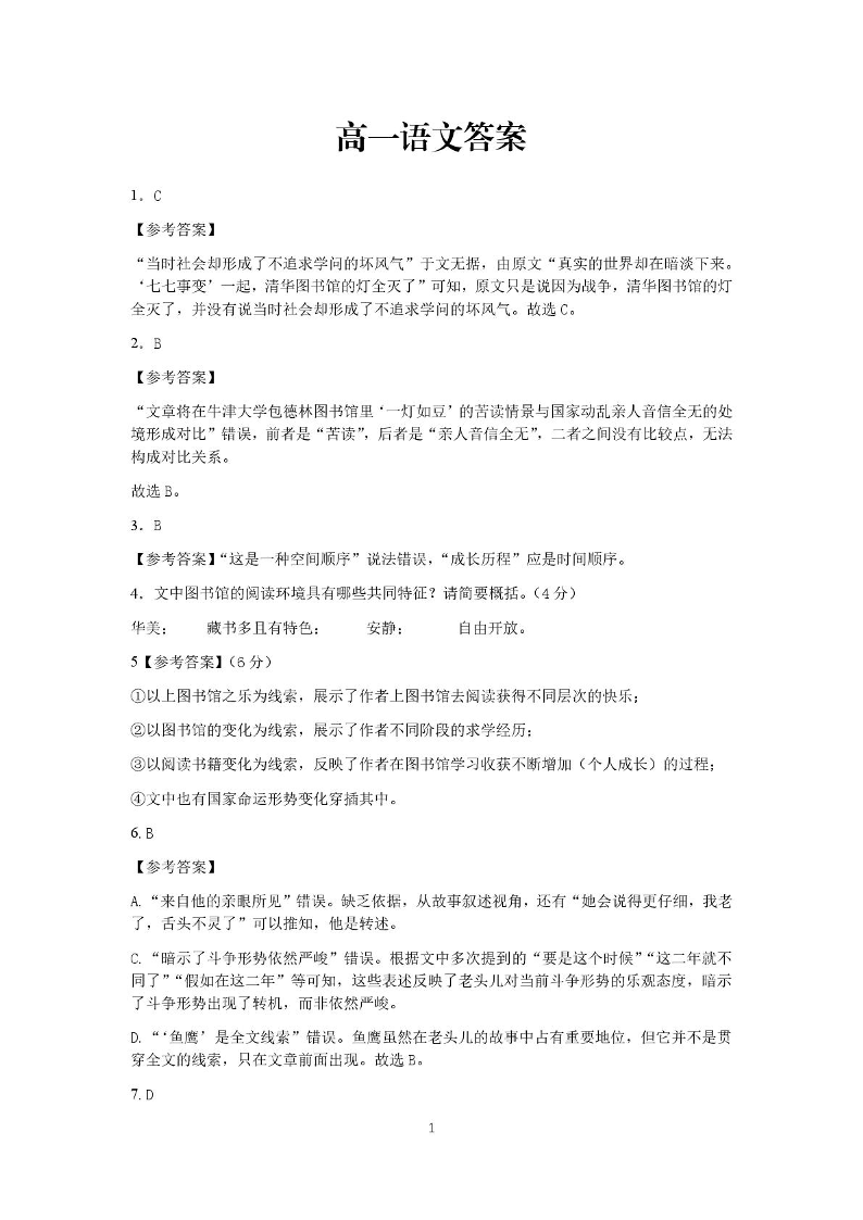 高一语文答案--吉林省普通高中友好学校联合体2025-2026学年高一上学期期末联考