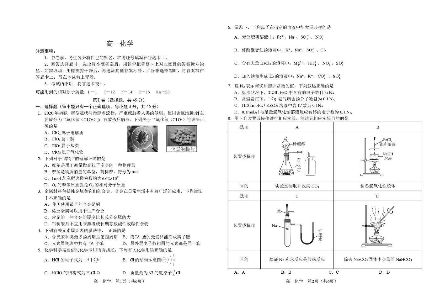 高一化学--吉林省普通高中友好学校联合体2025-2026学年高一上学期期末联考