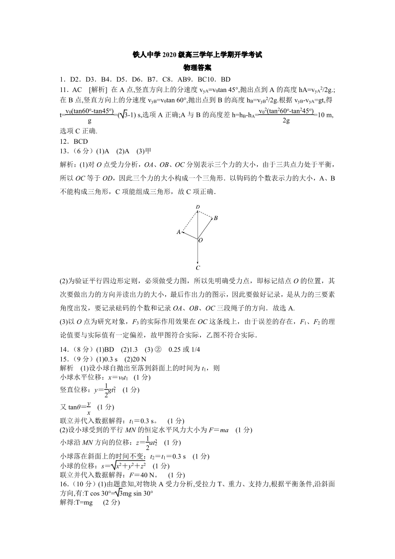 高三物理答案--黑龙江省大庆铁人中学2023届高三上学期开学考试