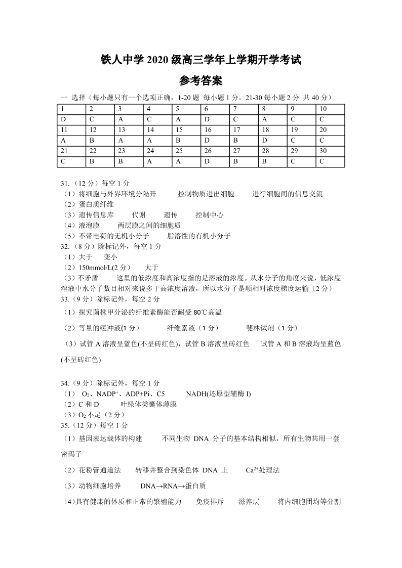 高三生物答案--黑龙江省大庆铁人中学2023届高三上学期开学考试