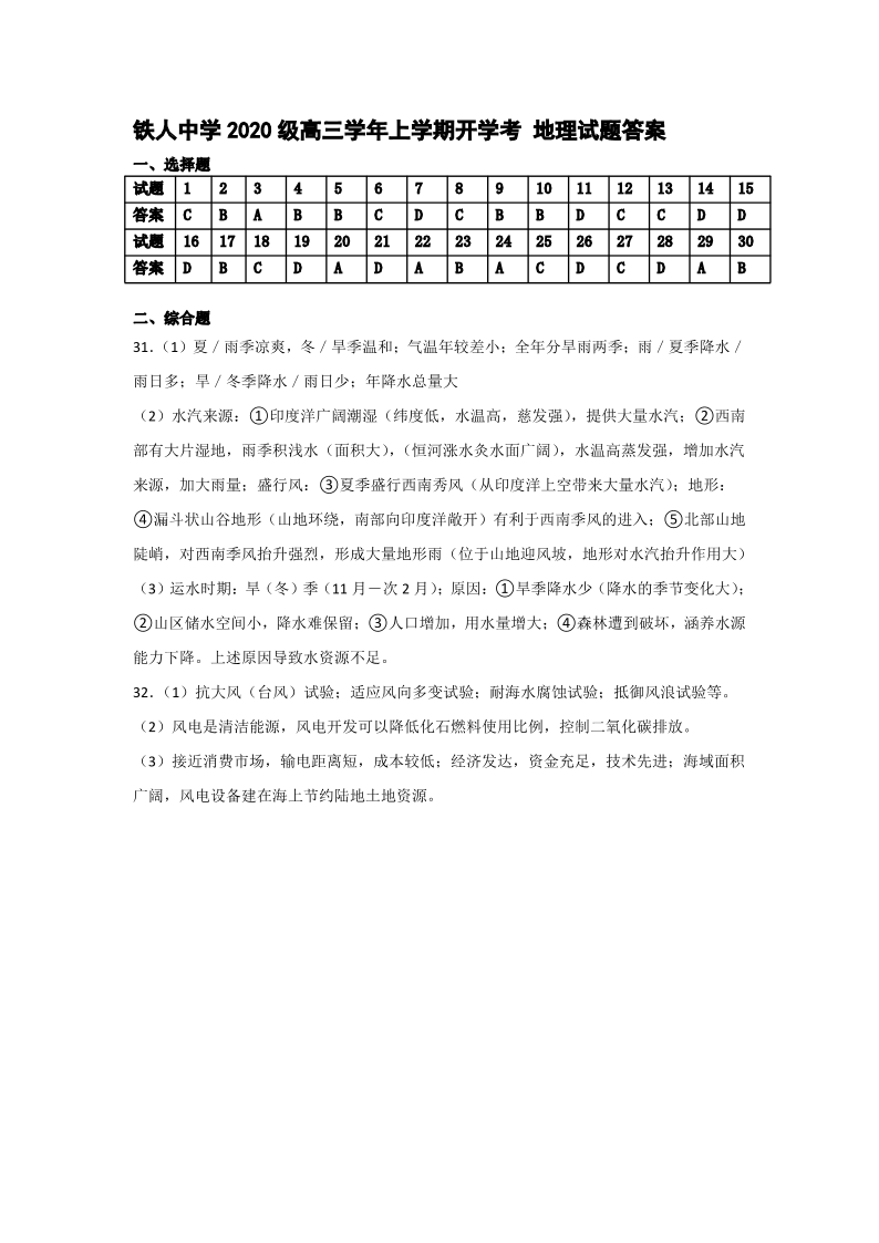 高三地理答案--黑龙江省大庆铁人中学2023届高三上学期开学考试
