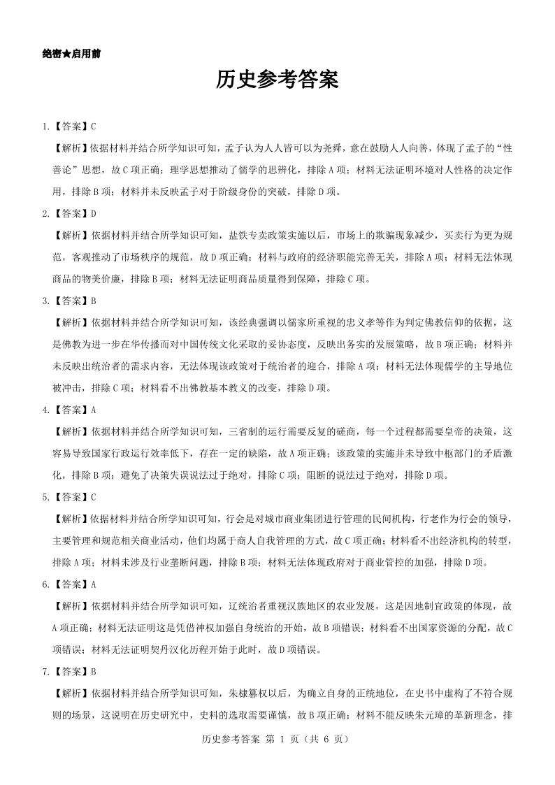 高三历史答案--黑龙江省齐齐哈尔部分学校2023届高三上学期10月月考