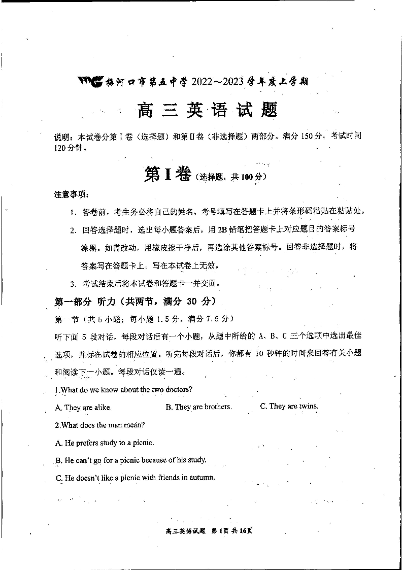 高三英语+答案--吉林省梅河口市第五中学高三上学期10月期中考试
