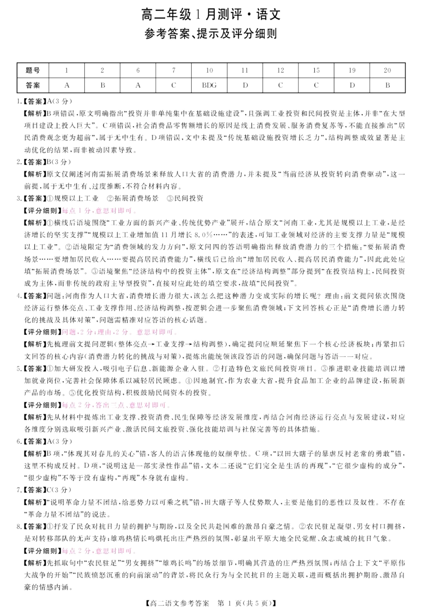 高二语文答案--河南新未来联考2025-2026学年高二年级1月测评