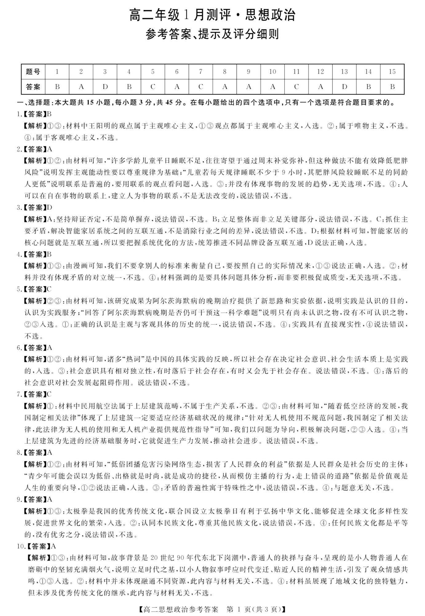 高二政治答案--河南新未来联考2025-2026学年高二年级1月测评