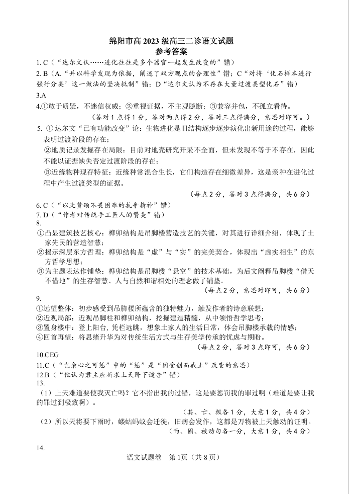高三语文答案--四川省绵阳市2026届高三上学期第二次诊断性考试(绵阳二诊)