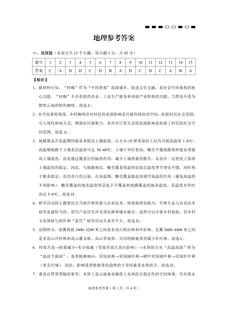 高三地理答案--重庆市巴蜀中学2026届高考适应性月考卷(六)