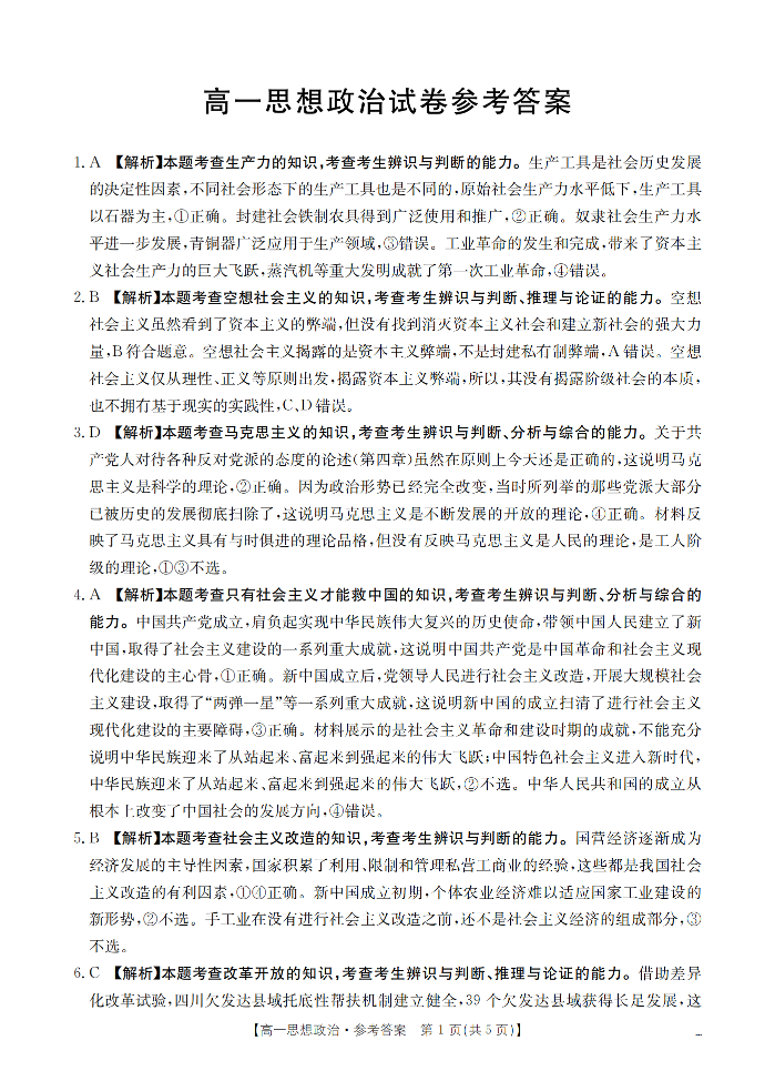 高一政治答案--四川省多校2025-2026学年高一上学期12月月考