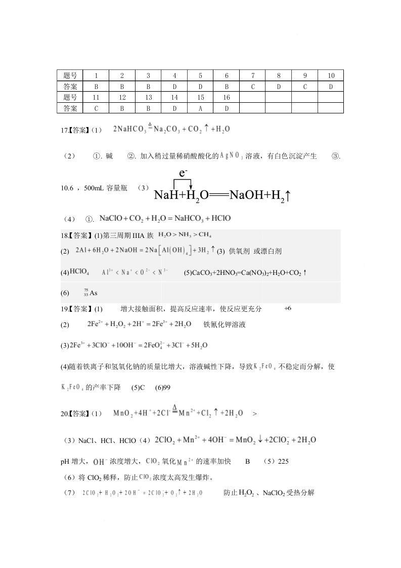 高一化学答案--广东省珠海市实验中学2025-2026学年高一上学期1月段考