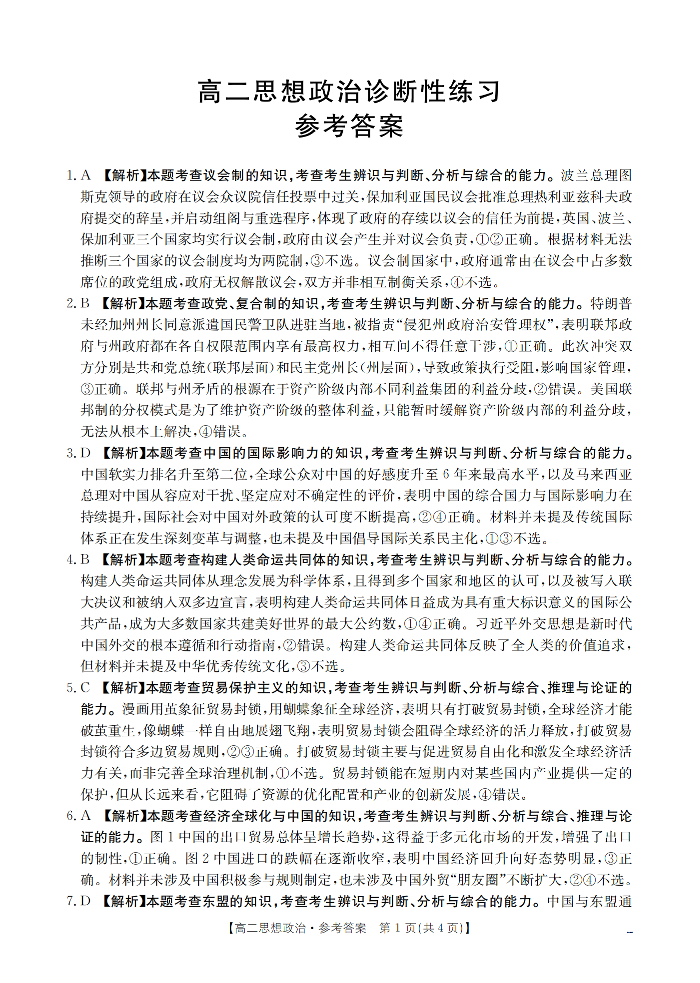 高二政治答案--山东省济宁市2025-2026学年高二上学期1月诊断性练习月考