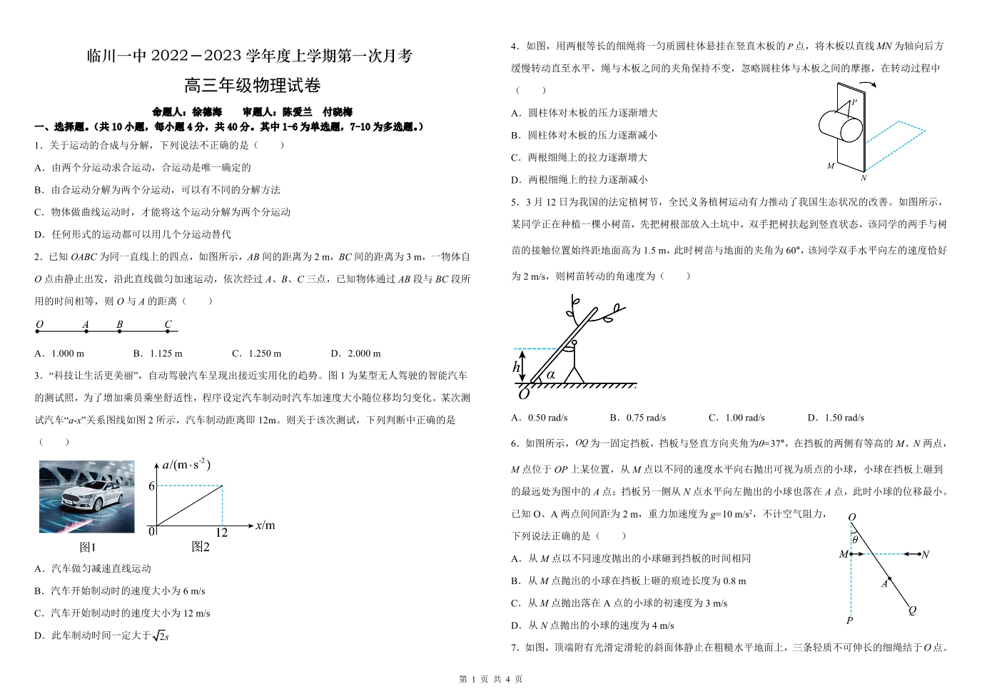 高三物理--江西省临川第一中学2023高三上学期第一次月考