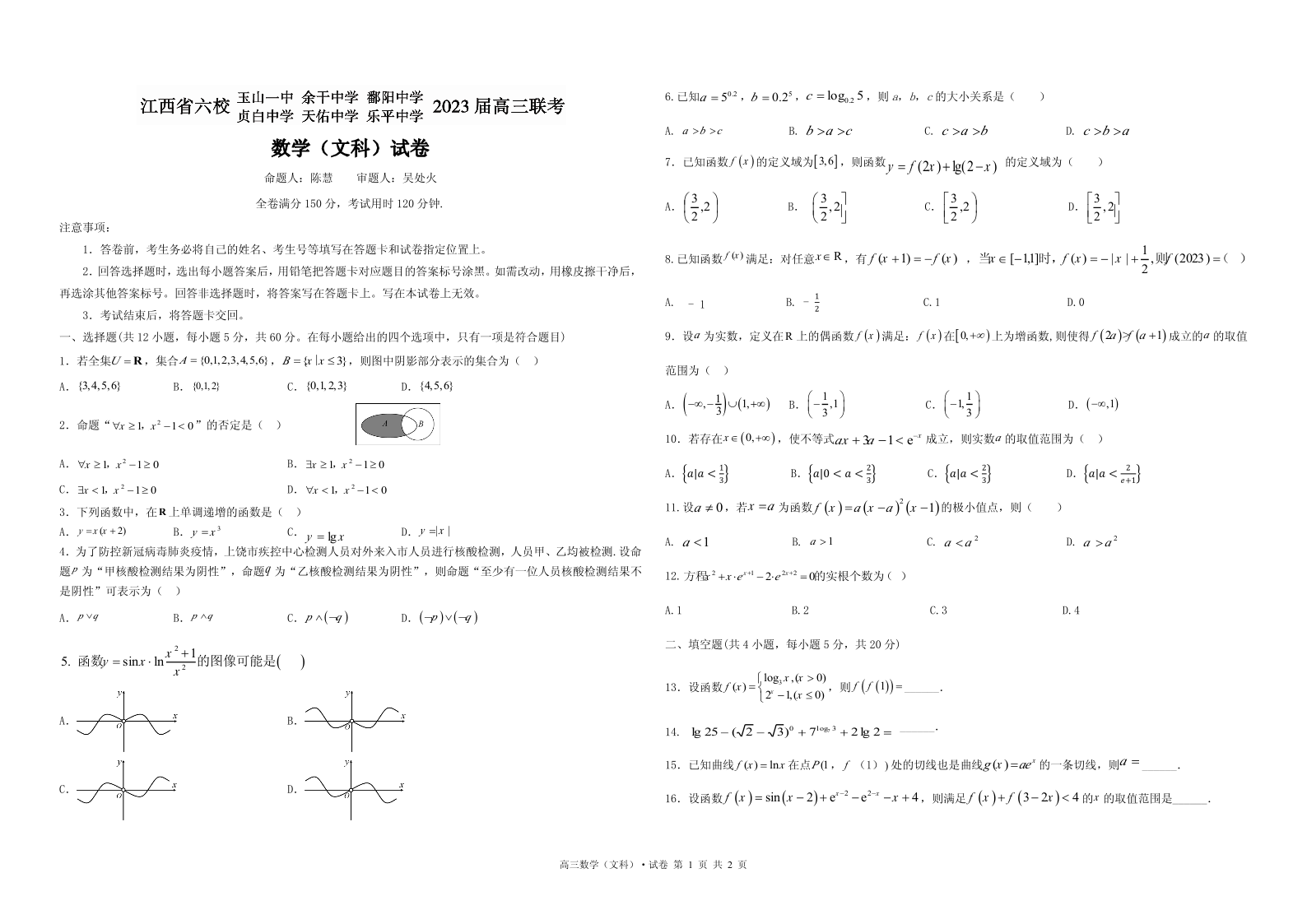 高三数学--江西省上饶市、景德镇市六校2023届高三上学期10月联考