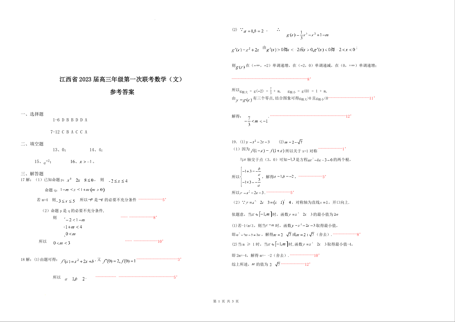高三数学答案--江西省上饶市、景德镇市六校2023届高三上学期10月联考