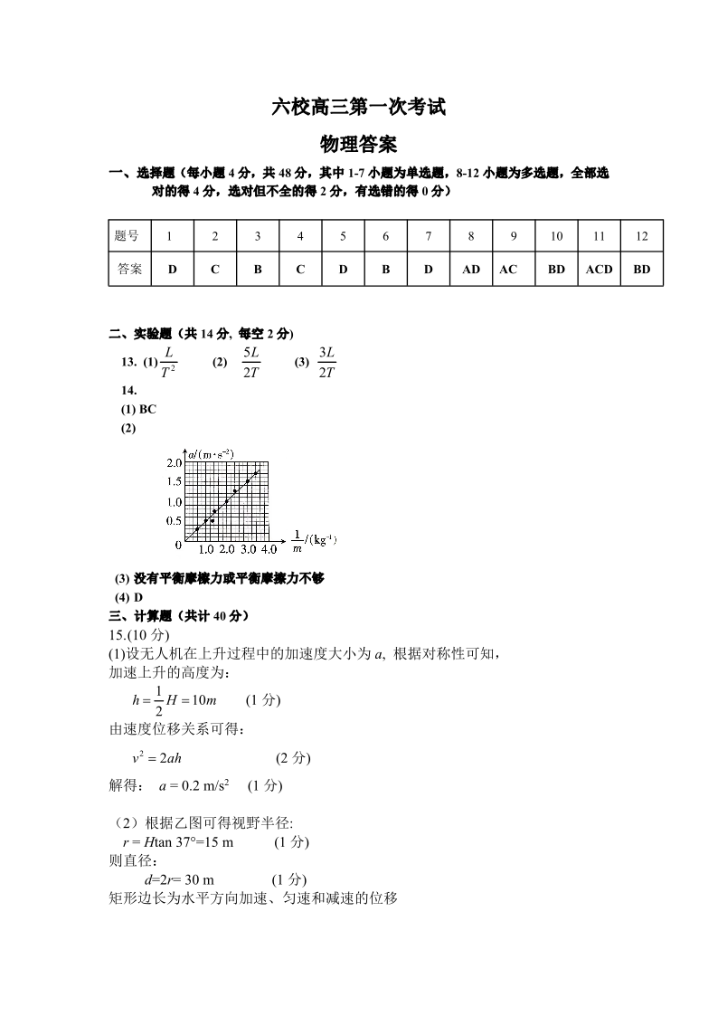 高三物理答案--江西省上饶市、景德镇市六校2023届高三上学期10月联考