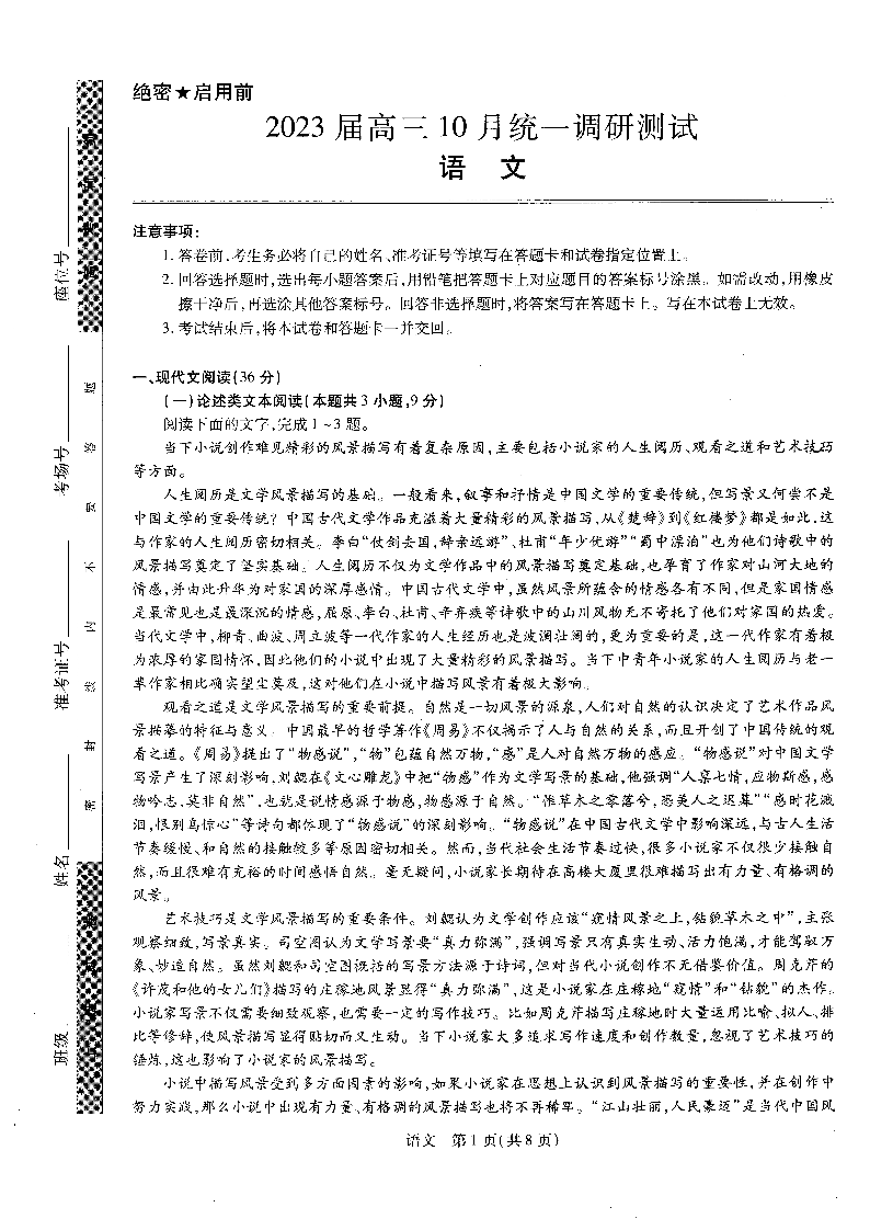 高三语文--江西省稳派智慧上进2023届高三10月调研