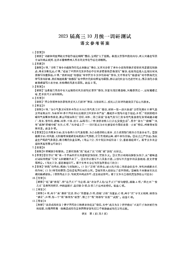 高三语文答案--江西省稳派智慧上进2023届高三10月调研