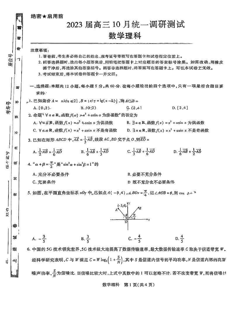高三理数--江西省稳派智慧上进2023届高三10月调研