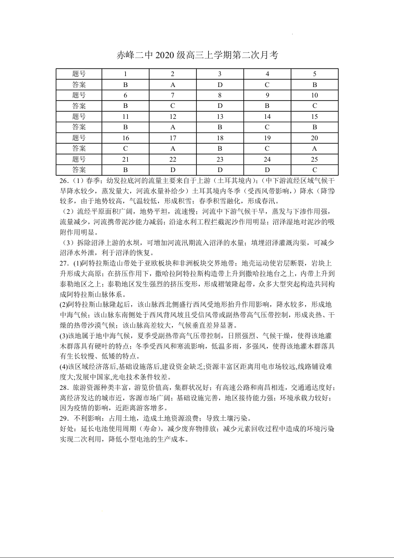 高三地理答案--内蒙古赤峰二中高三上学期10月第二次月考