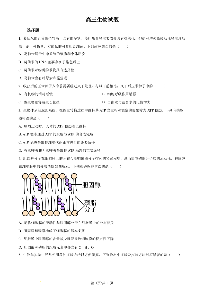 高三生物(原卷版)--山西省忻州市2022-2023学年高三上学期第二次联考
