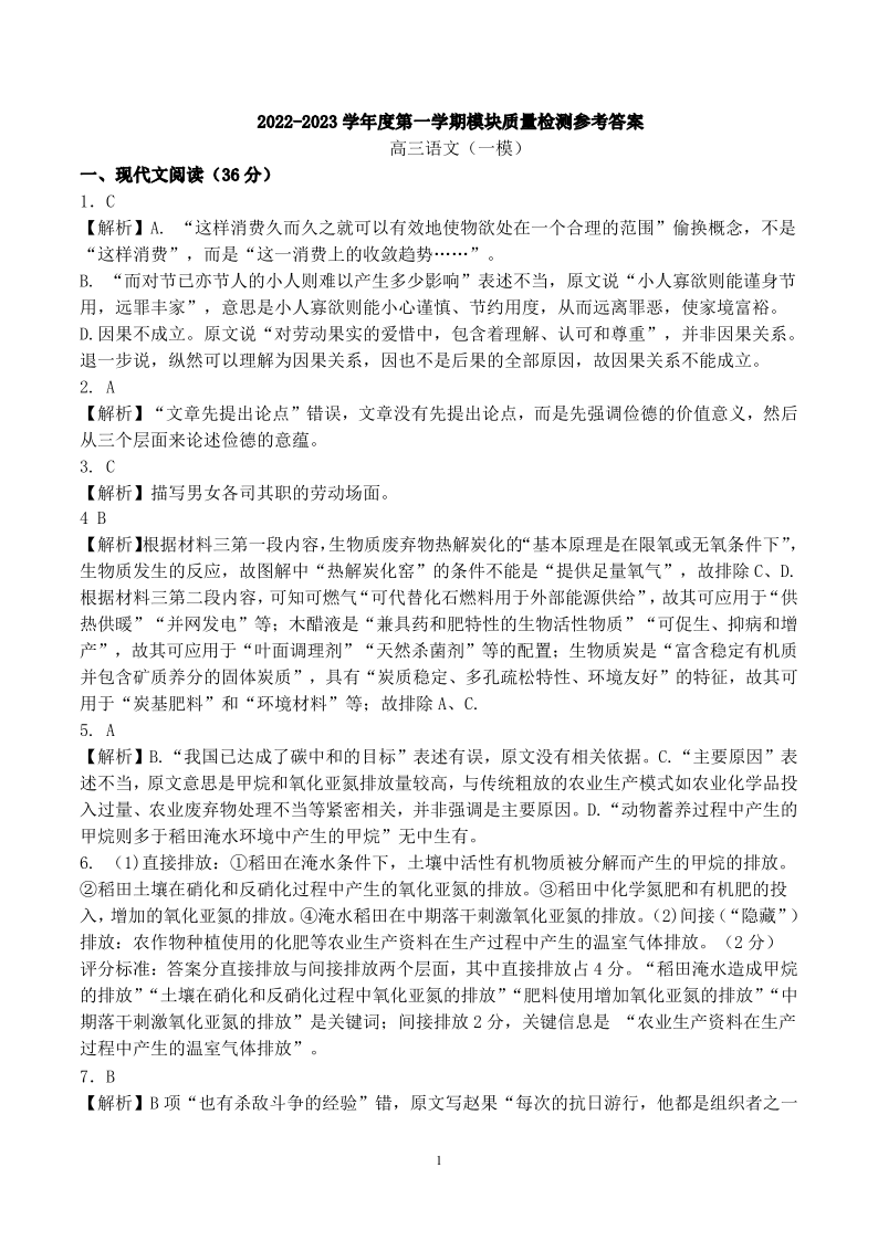 高三语文答案--陕西省西安市西北工业大学附属中学2022-2023学年高三上学期第一次适应性训练