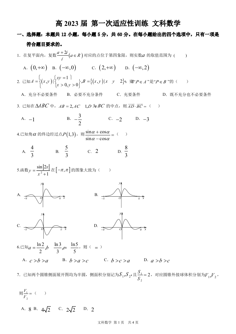 高三文数--陕西省西安市西北工业大学附属中学2022-2023学年高三上学期第一次适应性训练