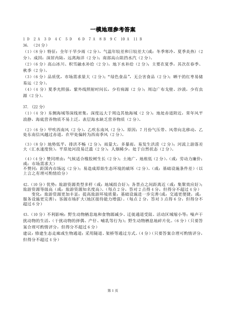 高三文综答案--陕西省西安市西北工业大学附属中学2022-2023学年高三上学期第一次适应性训练