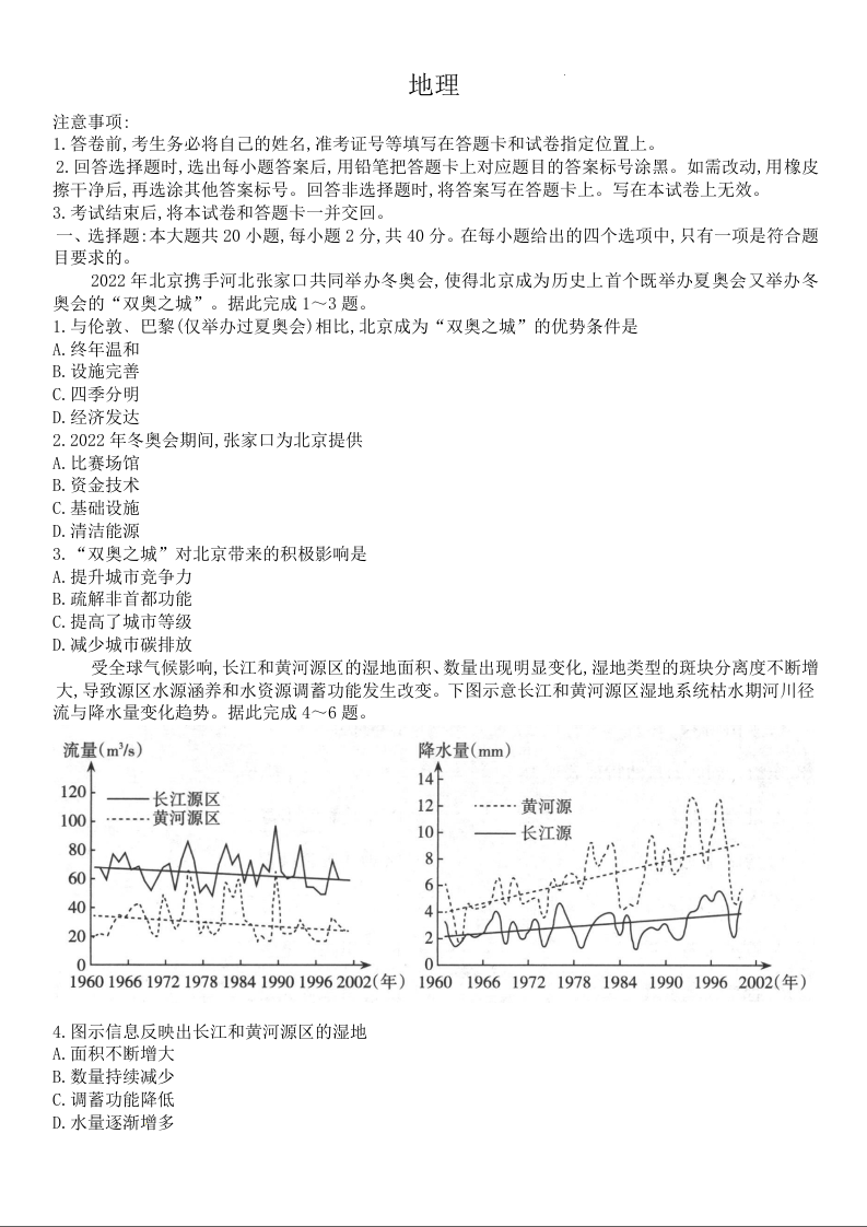 高三地理--山西省运城市2023高三年级入学新生教学质量监测考试