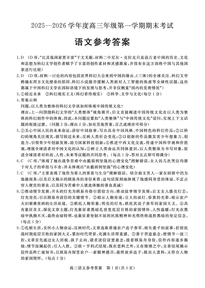 高三语文答案--河北省雄安新区202届高三年级第一学期1月期末考试