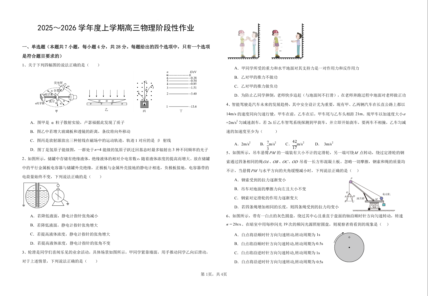 高三物理--江西省五市十校协作体2026届高三上学期1月期末阶段性作业