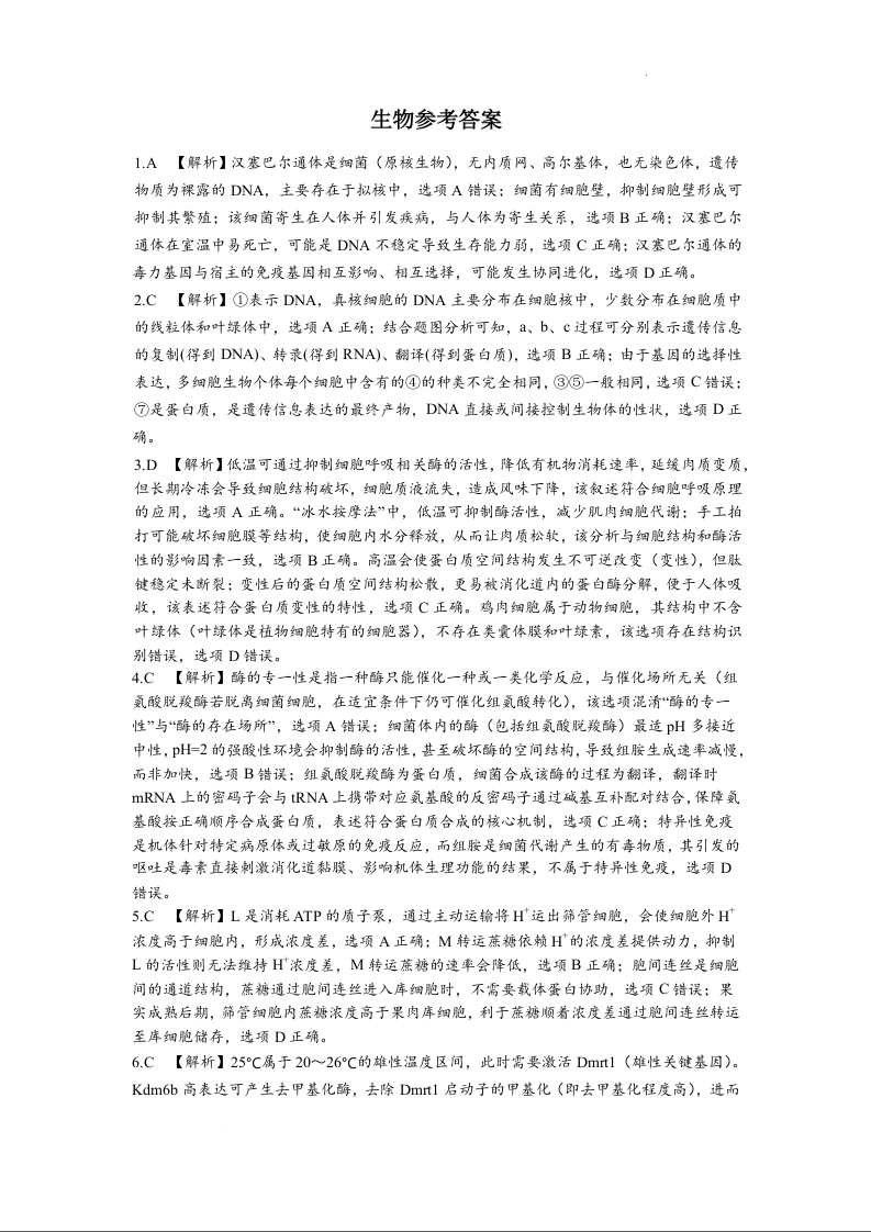 高三生物答案--江西省五市十校协作体2026届高三上学期1月期末阶段性作业