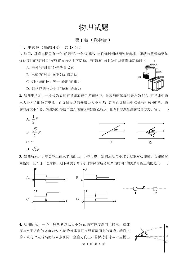 高三物理--四川省绵阳中学2026届高三第二次模拟考试