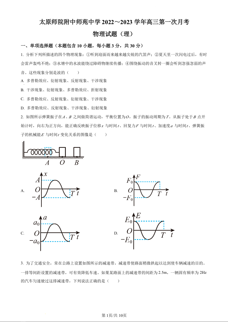 高三物理(原卷版)--山西省太原师范学院附属中学23届高三上学期第一次月考